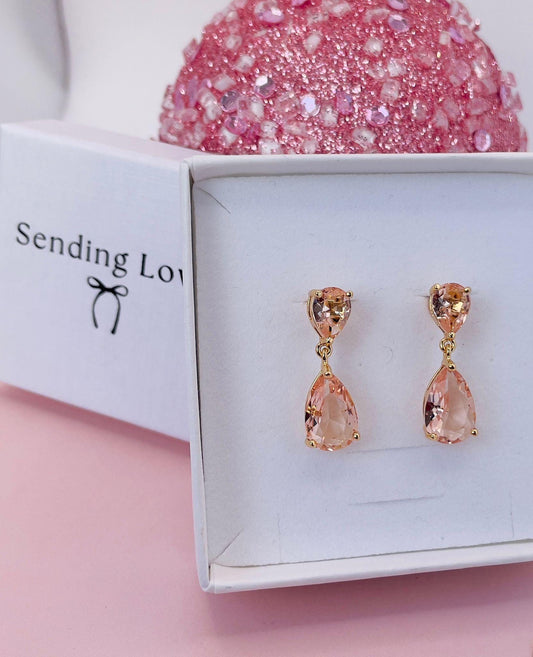 Blush Teardrop Earrings Winter Wedding Jewellery | Christmas Party Earrings