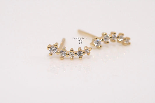 Starburst Ear Climber Earrings: 925 Silver and Gold