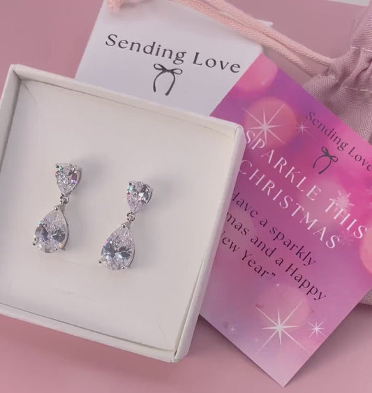 Sparkling Silver Dangle Earrings , Christmas Party Jewellery, Bridesmaid Earrings