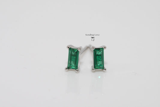 Dainty Emerald Stud Earrings: 925 Silver, 18k Gold Plated