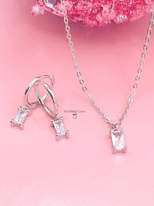 Gold Necklace and Earrings Set: Cubic Zirconia Bridesmaid Jewelry