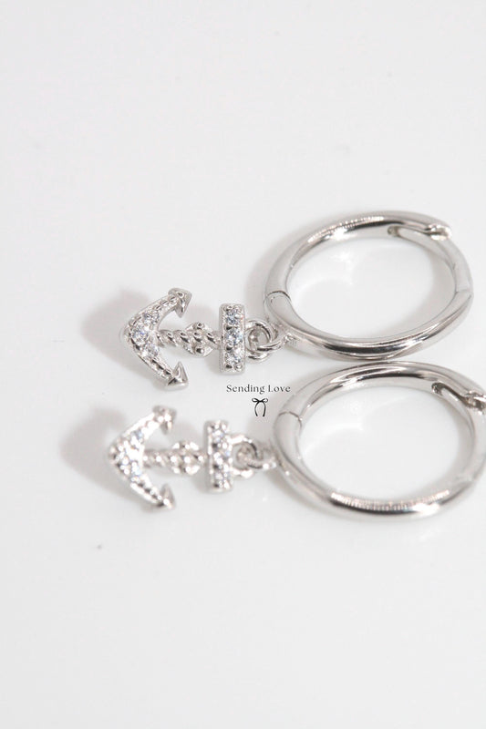 Anchor Hoop Earrings | Gold or Silver Anchor Charm Hoops | Nautical Jewellery Gift | Christmas Earrings for Her | Everyday Hoops Under 20
