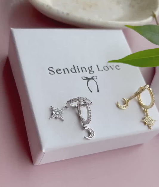 Moon and Star Hoop Earrings Christmas Gift for Her