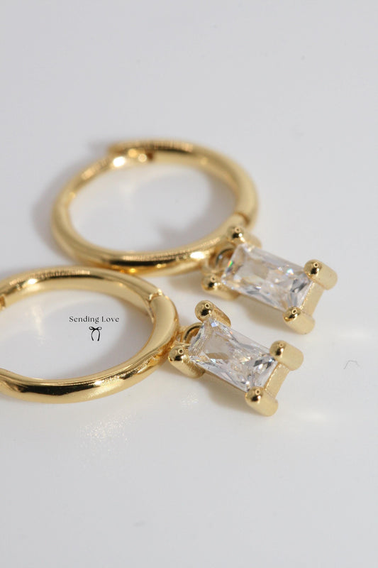 Gold Huggie Hoop Earrings: Sterling Silver CZ Dangle, Wedding Jewelry