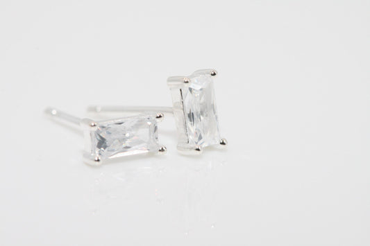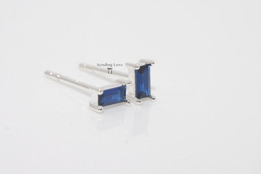 Sapphire 925 Silver Stud Earrings: Dainty Rectangle Design