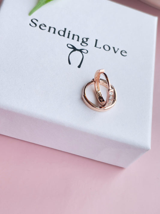 CZ Huggie Hoop Earrings: 925 Sterling Silver, Rose Gold