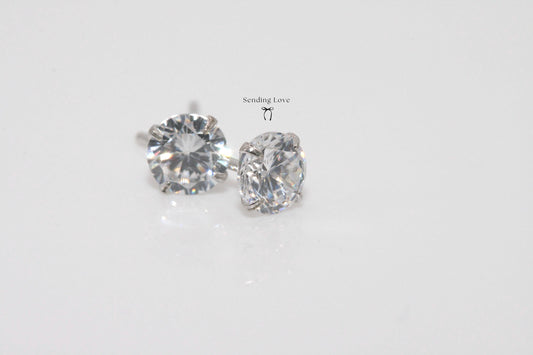 Sterling Silver Bridesmaid Earrings: Cubic Zirconia Studs, Wedding Jewelry