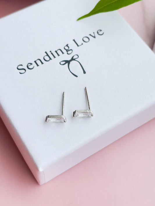 Sterling Silver CZ Baguette Stud Earrings Minimalist Everyday Jewellery