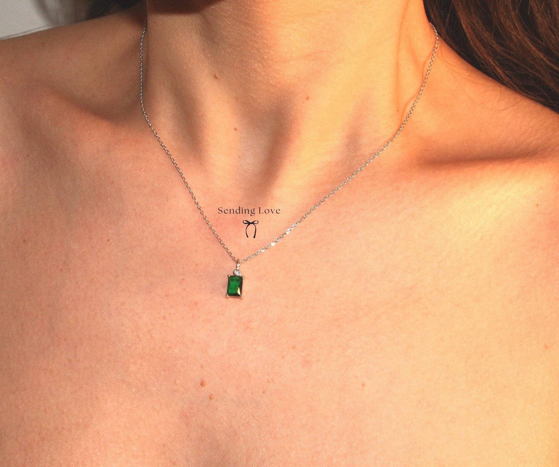 This elegant jewellery set includes a sparkling emerald-cut pendant necklace and matching hoop earrings, crafted in your choice of solid 925 sterling silver or 18ct gold plated sterling silver. The deep green stones are timeless and sophisticated, making this set the perfect Christmas gift for her, birthday surprise, or bridesmaid jewellery.