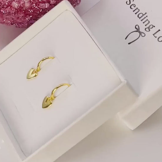 The Perfect Christmas Gift - Gold heart hoop Earrings gift for Christmas gold heart huggie earrings 925 silver gold earrings.